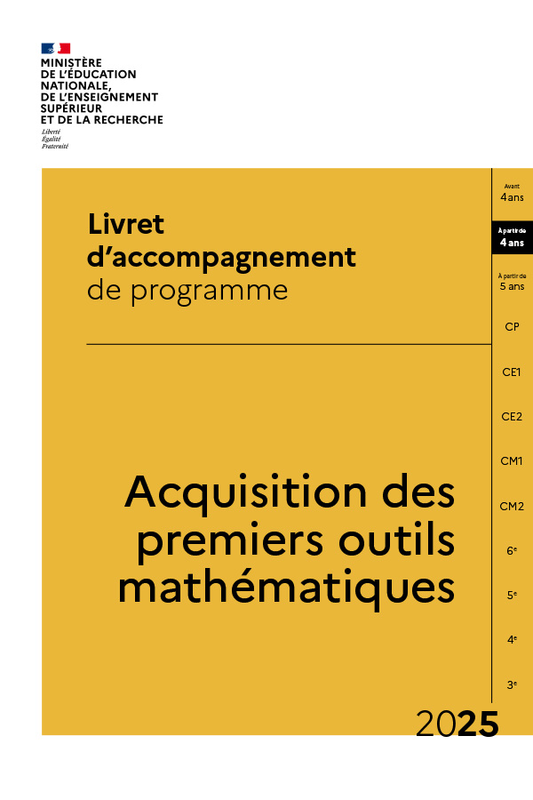 Alors les enseignants disposent déjà du guide La construction du nombre à l'école maternelle ainsi que de ressources que l'on trouve sur Eduscol. Je pense par exemple à la ressource Utiliser le nombre pour résoudre des problèmes. Ces deux ressources proposent de nombreux attendus, de nombreux éléments de progressivité tout au long de l'école maternelle, des situations de référence, des situations qui permettent d'observer les acquis des élèves. Donc, il y a déjà là des éléments à disposition des enseignants, des équipes.