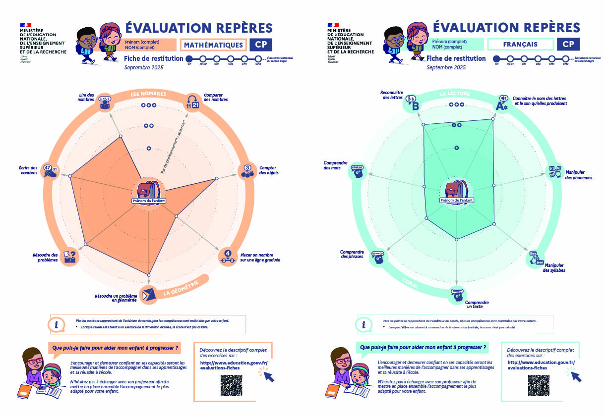 Afin de permettre aux enseignants d'adapter leurs pratiques pédagogiques à leur classe, les élèves de CP sont évalués en français et en mathématiques…