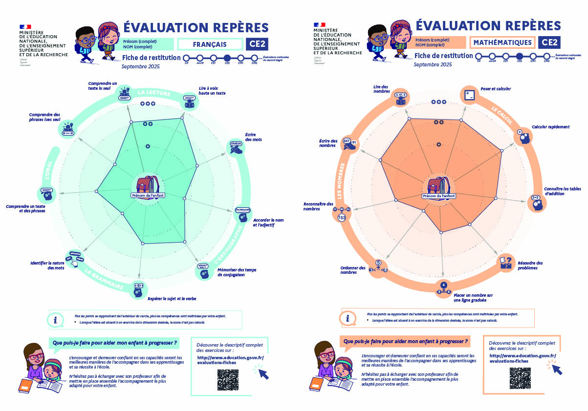 Les professeurs peuvent s'appuyer sur les infographies explicatives relatives aux évaluations disponibles sur education.gouv.fr en vue d'informer les représentants légaux.