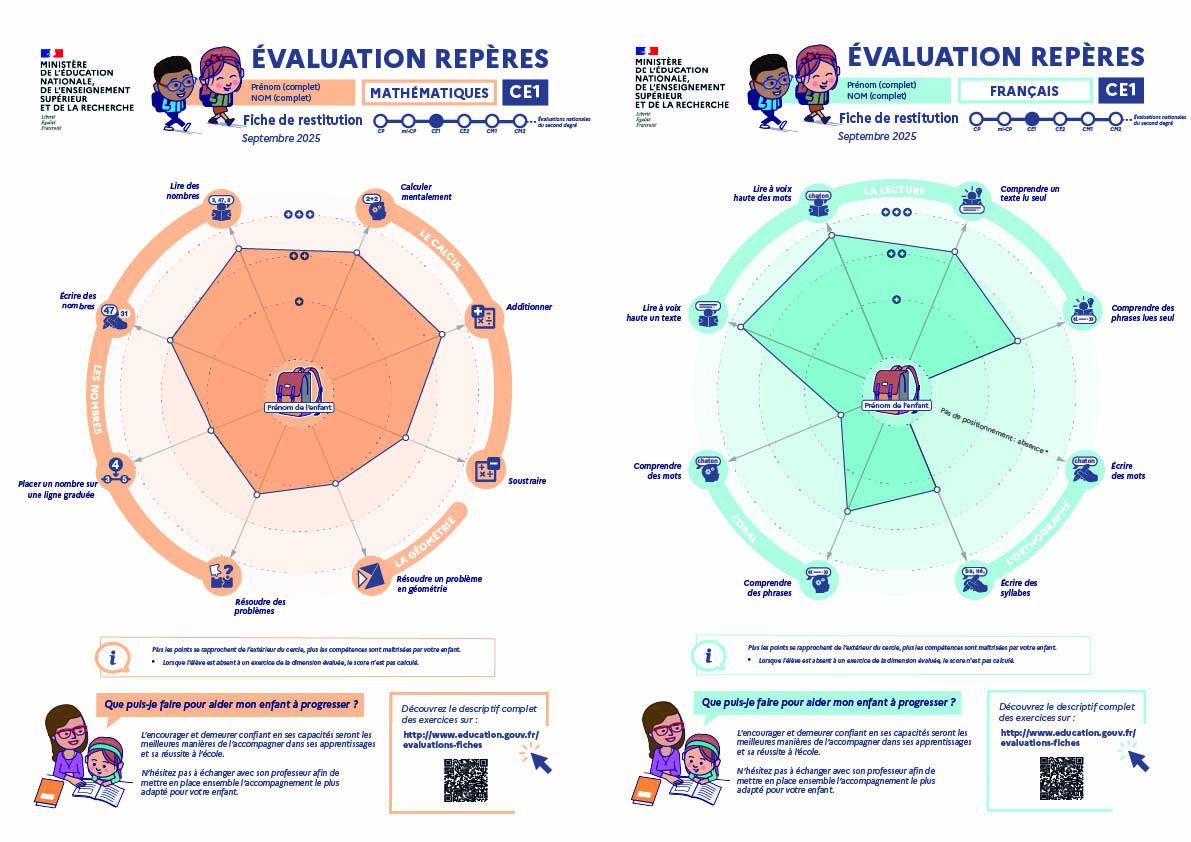 Pour permettre aux enseignants d'adapter leurs pratiques pédagogiques à leur classe, les élèves de CE1 sont évalués en français et en mathématiques en début d'année scolaire.
