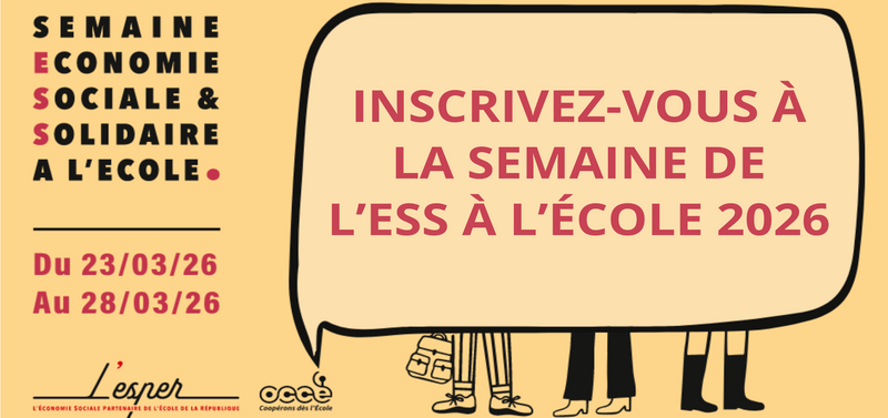 La Semaine de l'ESS à l'École offre le cadre pour faire découvrir en classe l’engagement, l’entrepreneuriat collectif et les principes de l’Économie Sociale et Solidaire (ESS) : la démocratie, la coopération, la solidarité, la citoyenneté, la durabilité…