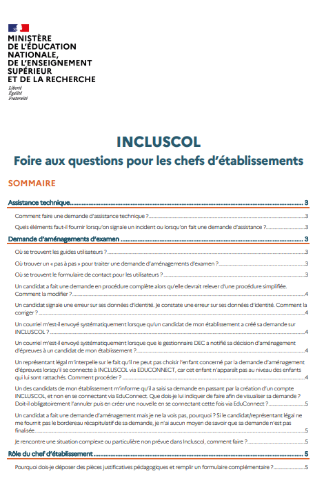INCLUSCOL - Foire aux questions pour les chefs d’établissements