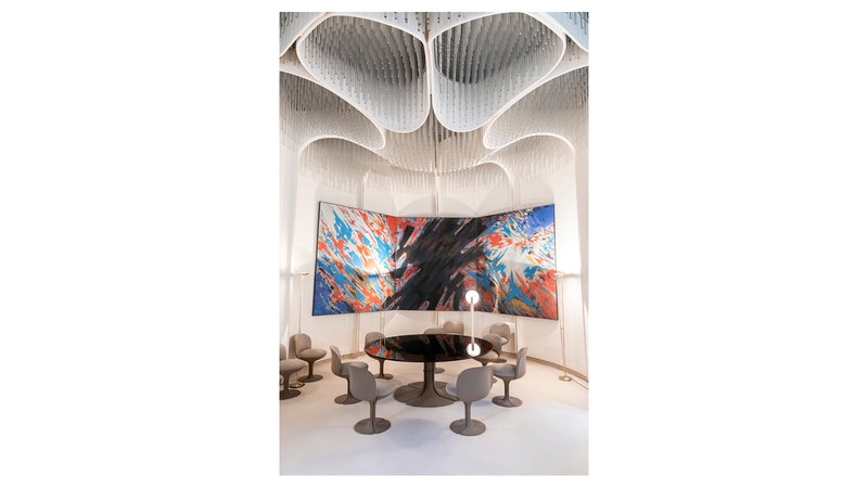 Salon aménagé par le designer Pierre Paulin