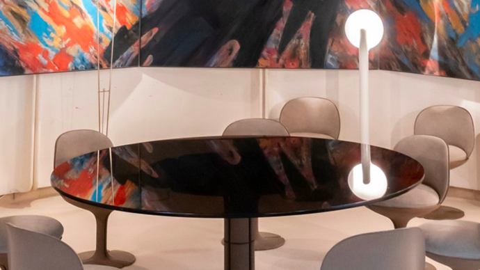 En 1969, Georges Pompidou fait appel au designer Pierre Paulin pour réaménager les appartements de l’Élysée. Le président veut donner une grande démonstration à la fois de la modernité et de la qualité française, et conserver à Paris son statut de capitale des arts. Travaillant avec la contrainte de ne pas toucher à l’existant, Pierre Paulin utilise des techniques nouvelles de construction provisoire et livre en 1972 un aménagement total extrêmement novateur, aux formes arrondies caractéristiques, utilisant des structures en aluminium, des mousses et le verre. Le succès est immédiat et international.