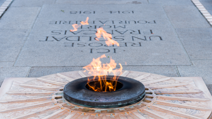 À Paris, un lieu de commémoration nationale voit le jour le 11 novembre 1920 avec une première cérémonie, sous l’Arc de Triomphe, rendant hommage au « Soldat inconnu » (dépouille non identifiée d’un soldat français tombé au champ d’honneur, représentant symboliquement l’ensemble des militaires tués). Une flamme éternelle y est allumée à partir du 11 novembre 1923 ; elle est ravivée tous les jours à 18h30 lors d’une cérémonie organisée par le Comité de la Flamme à laquelle les élèves peuvent participer.