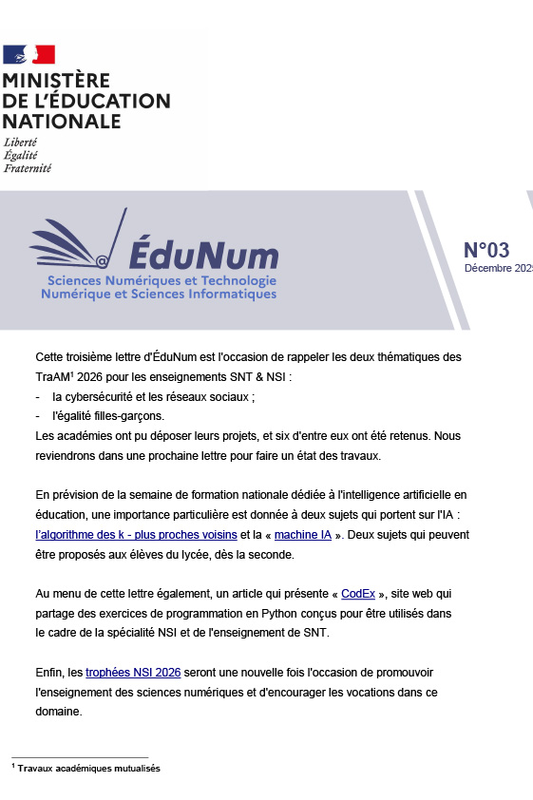 Lettre ÉduNum SNT - NSI n° 1 - janvier 2025