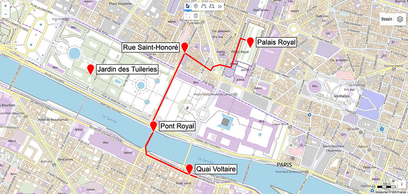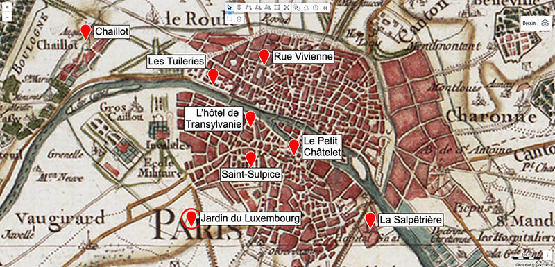 Au début de La Peau de Chagrin de Balzac, la précision des notations de lieu permet de retracer pratiquement rue par rue le trajet de Raphaël. Ce scénario de l’académie de Versailles en propose, en fin d’article, une carte réalisée avec Édugéo en 2021. Dans sa version actuelle, le logiciel permet d’en réaliser facilement une version plus claire.
