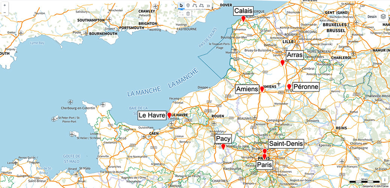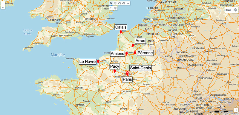 Pour accéder à ce fond de carte, il suffit de suivre le mode d’emploi – fonds de cartes Édugéo. Intéressant pour se faire une idée de la taille de la ville d’Amiens à l’époque, il l’est encore plus pour se représenter la région parisienne.