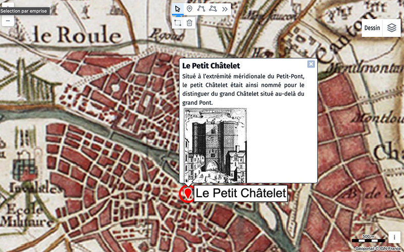 Mettant à disposition différents fonds de cartes, dont des fonds de cartes anciennes, elle permet de les annoter en plaçant des repères auquel on peut associer des bulles comprenant des commentaires et des images.