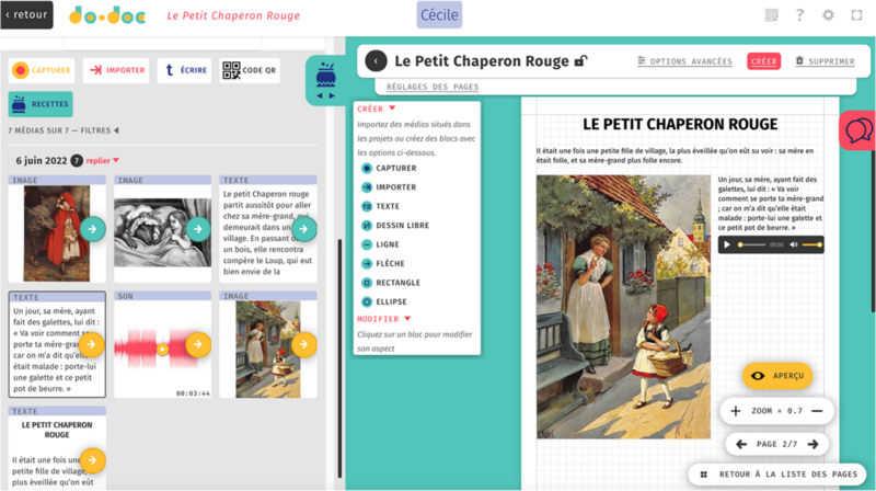 Exemple de création d'un conte enrichi avec do•doc à partir du récit du Petit chaperon rouge.